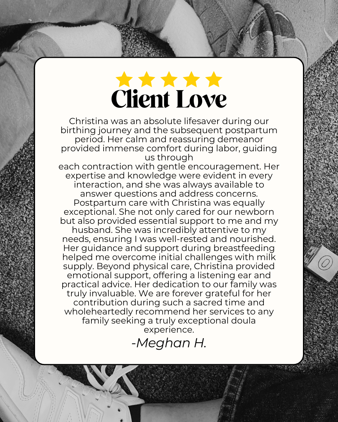Hello! I'm Christina. I am a Certified Birth Doula, Postpartum Doula, and Breastfeeding Specialist dedicated to maternal-baby well-being.